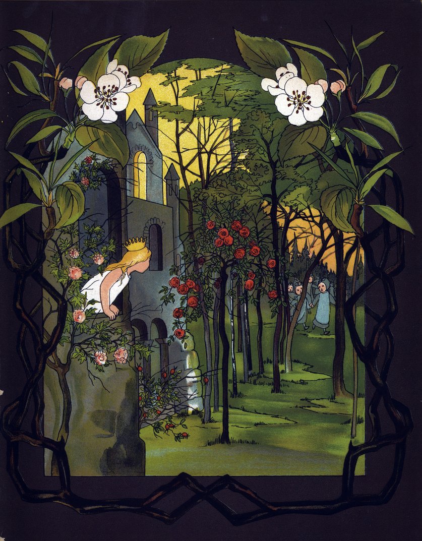 One lovely summer morning the little Princess Rosemary woke up early, jumped out of bed, put on her crown and popped her head out of the castle window. There she saw, through the branches of the Queen’s best rose-tree, a merry band of Dew Children, sparkling through the castle park as lightly as if blown on the morning wind.
