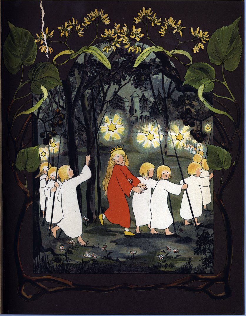 At last darkness fell and many bright little Star Children came with their star lanterns to light the little Princess home through the deep wood. She was sleepy, for she had laughed and worked and played all day, and was glad to see the towers of her father’s castle through the trees when the friendly Star Children had led her safely home.