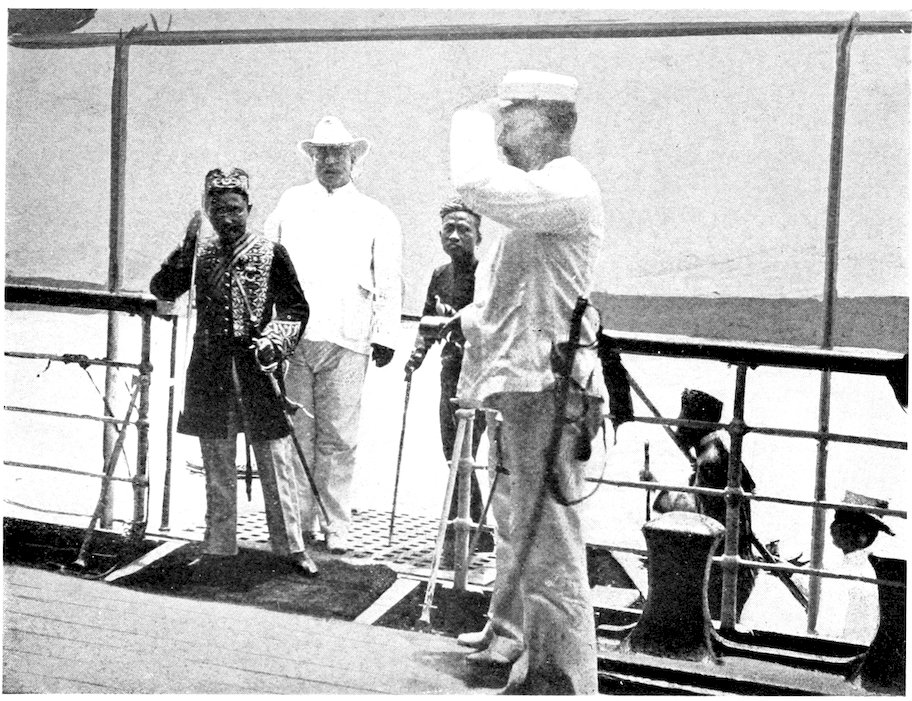 | The Sultan of Sulu boarding the Sumner, followed by Mr. Arthur Fergusson, Spanish secretary to the Commission | 166 |