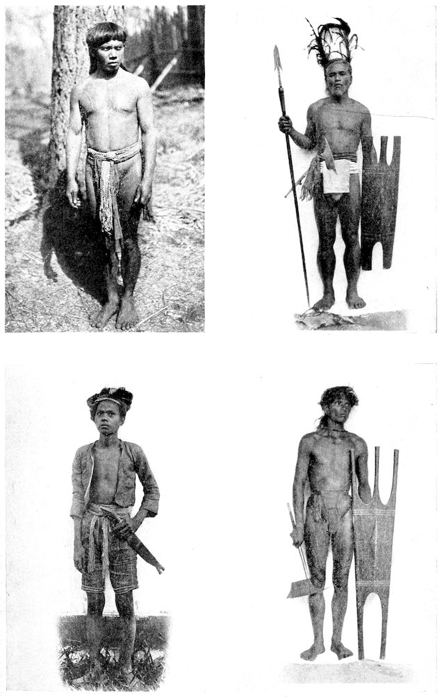 | Philippine non-Christians: A Bontoc Igorrote (top left); a Moro and two Kalinga chiefs (with shields) | 182 |