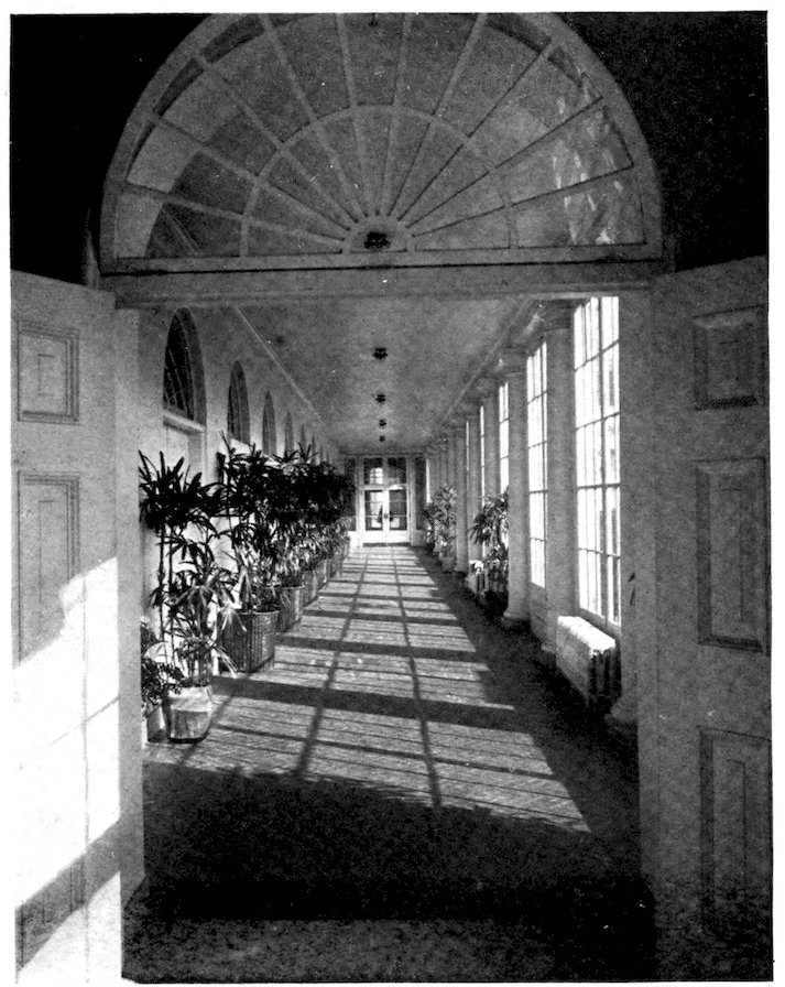 Several days before a large reception my cooks would begin to turn out piles upon piles of small pastries and to do all the things that could be done in advance. Then on the day of the reception, with plenty of extra assistants, it was found easily possible to prepare all the salads and sandwiches, the ices and sweets, the lemonades and the punches that were necessary. Nor did we find that it interfered in the least with the usual household routine. We took our 379meals in the small family dining room adjoining the State Dining Room, and even gave small and successful dinner parties while the State Dining Room was in the hands of the carpenters and decorators.