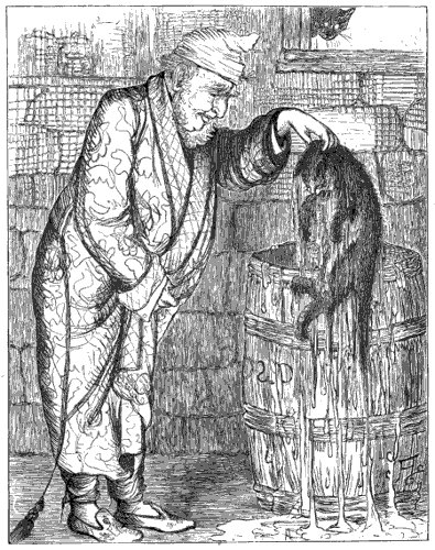 When I heard this, I almost wished they had left me to drown in the soft soap; for if there is any thing of which I have a mortal dread, it is water. However, I was too weak to resist; and they plunged me in all over, into the tub full of ice-cold water, and Mary began to rub me with her great rough hands, which, I assure you, are very different from yours and your mother's. Then they all laughed again to see the white lather it made; in two minutes the whole tub was as white as the water under the mill-wheel that you and I have so often been together to see. You can imagine how my eyes smarted. I burnt my paws once in getting a piece of beefsteak out of the coals where it had fallen off the gridiron, but the pain of that was nothing to this. You will hardly believe me when I tell you that they had to empty the tub and fill it again ten times before the soap was all washed out of my fur. By that time I was so cold and exhausted, that I could not move, and they began to think I should die. But your mother rolled me up in one of your old flannel petticoats, and made a nice bed for me behind the stove. By this time even Mary began to seem sorry for me, though she was very cross at first, and hurt me much more than she need to in washing me; now she said, "You're nothing but a poor beast of a cat, to be sure; but it's mesilf that would be sorry to have the little mistress come back, and find ye kilt." So you see your love for me did me service, even when you were so far away. I doubt very much whether they would have ever taken the trouble to nurse me through this sickness, except for your sake. But I must leave the rest for my next letter. I am not strong enough yet to write more than two hours at a time.
