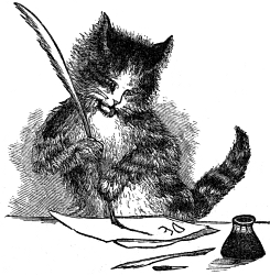 That is what your mother calls you, I know, for I jumped up on writing-table just now, and looked, while she was out of the room; and I am sure I have as much right to call you so as she has, for if you were my own little kitty, and looked just like me, I could not love you any more than I do. How many good naps I have had in your lap! and how many nice bits of meat you have saved for me out of your own dinner! Oh, I'll never let a rat, or a mouse, touch any thing of yours so long as I live.