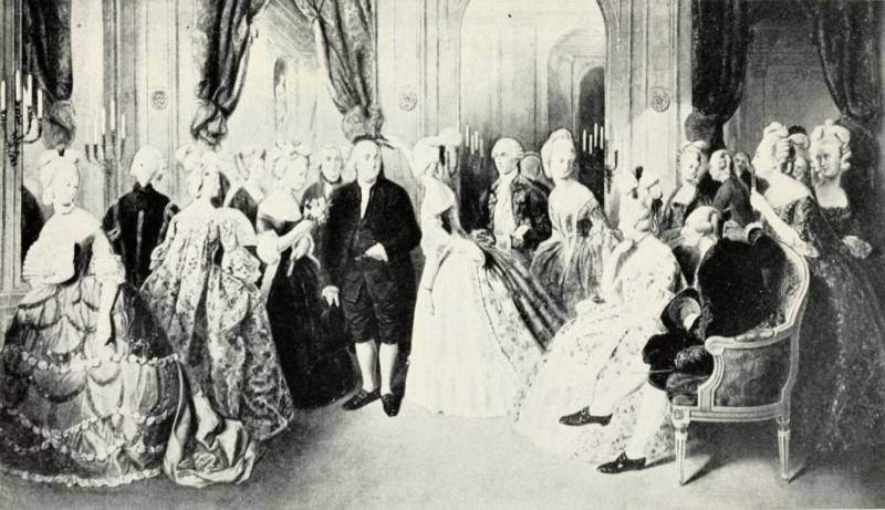 Some of the cafés were very humble, some very expensive, but none were strictly fashionable. To be seen dining in such a place indicated that a man had no invitations to dinner, so the eighteen or twenty thousand fops who, curled and perfumed, went from house to house cared little for cafés. They ate like grasshoppers, through the welcome of one host on Monday and another on Tuesday, and so down the week, "knowing neither the price of meat nor of bread, and consuming not one-quarter of that which was set before them," while thousands went hungry—which is the reason that after a time [Pg 27]the men in the cafés rose and took a terrible revenge. Paris was by no means all France, but whatever Paris did and felt the other towns were doing also; and slowly but surely the passions animating them would make their way to the loneliest peasant hut on the remotest edge of the kingdom.
