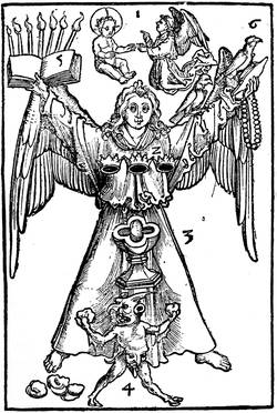 The Ars Memorandi, another xylographic work, of which the subject, taken from the New Testament, was equally well adapted to the imagination of the artists, had also a glorious destiny. The work originally comprised thirty blocks, the fifteen blocks of text facing the fifteen engravings. The designs represented the attributes of each of the Evangelists, with allegories and explanatory legends. Thus, in that which relates to the Apostle Matthew,