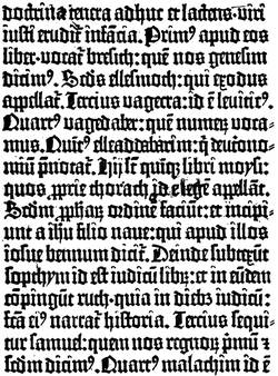 Fig. 5.—Fragment of the Mazarine Bible, printed in two columns. Beginning of the text in the second column; original size.