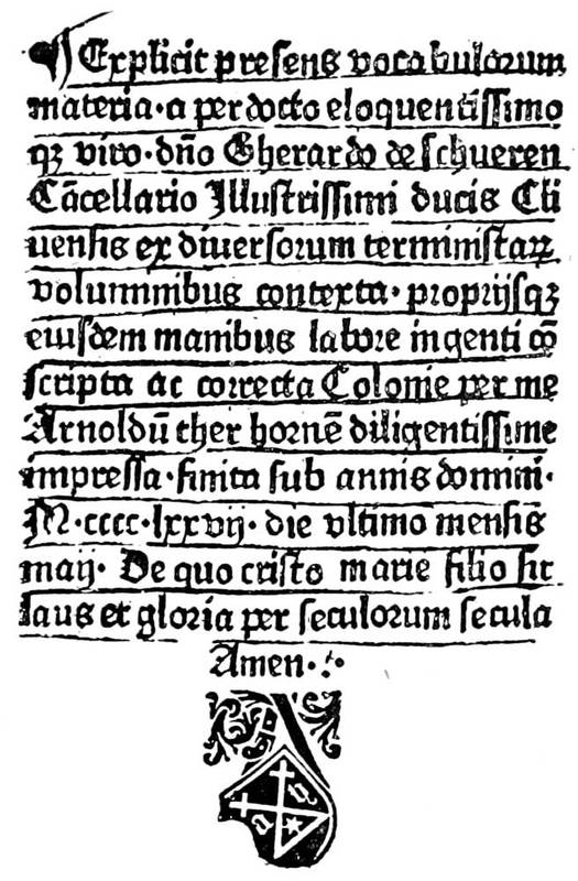 - Ther-Hoenen, Arnold, first printer using Arabic numerals for pages, 36, 58, 88.