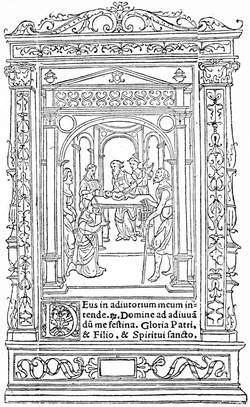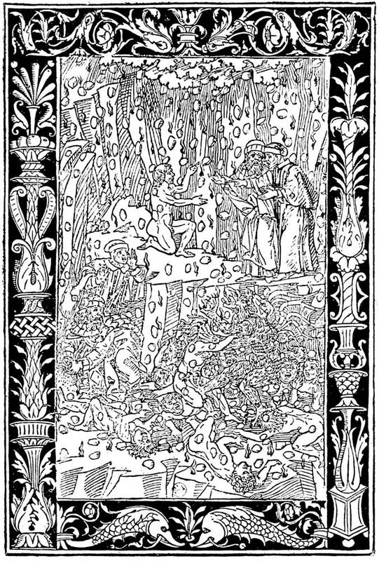 To find a means of multiplying these treatises at little cost was a fortune to the inventor. It is to be supposed that many artisans of the time attempted it; and without doubt it was the booksellers themselves, mostly mere dealers, who were tempted to the adventure by the sculptors and wood-cutters. But none[6] had yet been so bold as to cut in relief a series of blocks with engravings and text to compose a complete work. That point was reached very quickly when some legend was engraved at the foot of a vignette, and it may be thought that the Donatus was the most ancient of books so obtained among the "Incunabuli," as we now call them, a word that signifies origin or cradle.