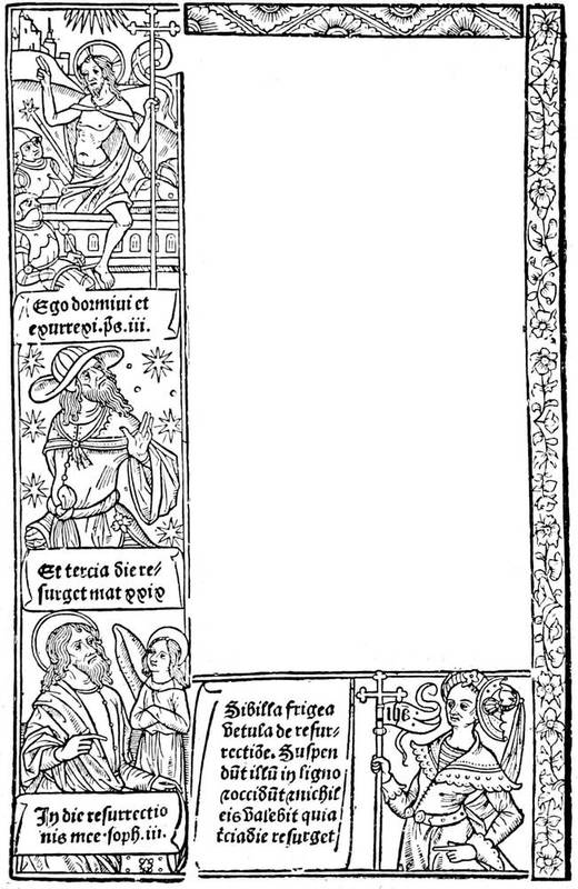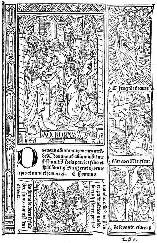 It is not our task to discuss this question at length, nor to decide if at first these reliefs were obtained on wood or metal. It is a recognised fact that the single sheet with a printed figure preceded the xylographic book in which text and illustration were cut in the same block. This process did not appear much before the[4] second quarter of the fifteenth century, and it was employed principally for popular works which were then the universal taste. The engraving also was nothing more than a kind of imposition palmed off as a manuscript; the vignettes were often covered with brilliant colours and gold, and the whole sold as of the best quality.