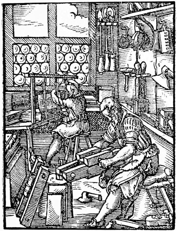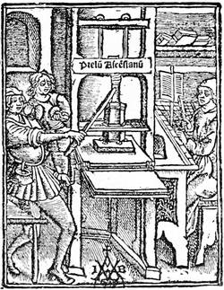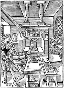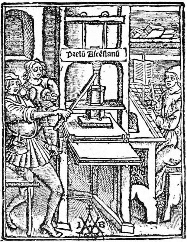 Such is, detached from the incredible contradictions of writers on art, and sketched solely on its main lines, the origin of printing as it is established at this day. First came the image engraved in relief, which we have not gone to China to find, with some of our predecessors. Upon this image were often cut, by the same economical process, legends of explanation that presented the idea of imitation of manuscript; and the xylographs appeared with or without illustrations. Then[30] from the correction of errors in these books followed the discovery of movable characters. This wooden type, possible when it was used with a frotton for printing, would quickly break under the press, the idea of which was gained from the common press of the wine-makers. Then a kind of metallic type had to be found which would run in a mould struck by a punch. This punch was not invented for the purpose; it served previously for the makers of coins and seals. The fabrication of type from the matrix was a simple adoption. The lead thrown into the matrix gave the desired type. Thus were made the first books, of which we have briefly related the composition.