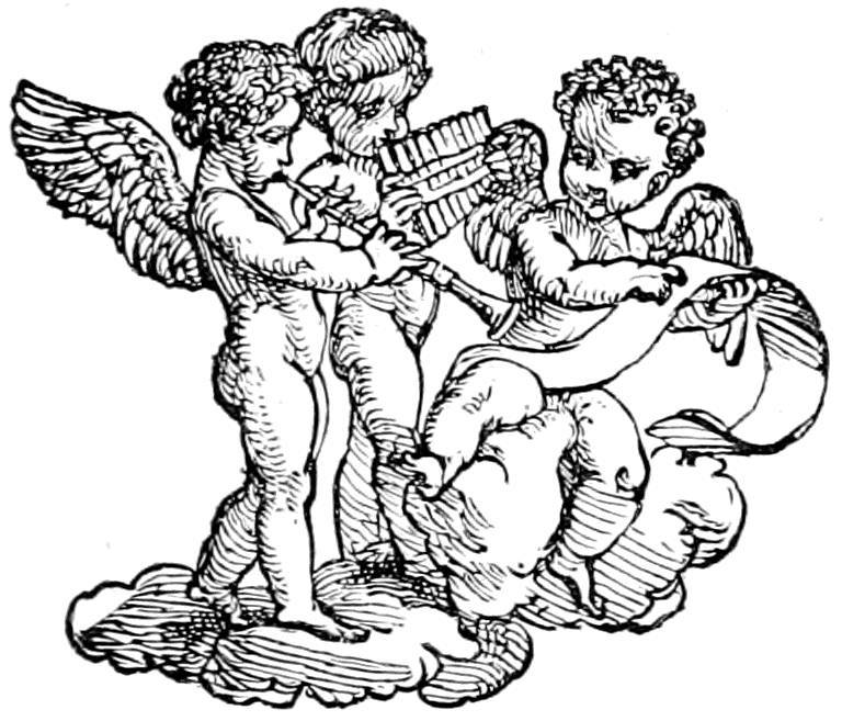 This mnemonic treatment of the Gospels began with symbols of which we have no means of finding the origin, but which without doubt were employed many centuries earlier. However that may be, their success was as great as that of the already-quoted works. In 1505 a German publisher put forth an imitation, under the title of Rationarium Evangelistarum; and this time the copier of the illustrations, retaining the tradition of the first xylographers, no less reveals an artist of the first order, at least a pupil of Martin Schongauer. Some of the conceptions of the Rationarium recall exactly the engravings of the great German master,[11] among others that of the Infant Jesus (plate 12), which nearly approaches the style of the Infant Jesus of Schongauer; besides, the principal figures leave but little doubt on the subject. The same wings are on the angels and on the eagles, the same coiffures on the human characters, often the same attitudes.