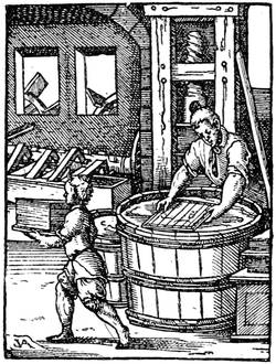 In the course of his work John Gutenberg returned to Mayence. The idea of publishing a Bible, the Book of books, had taken possession of his heart. The Spiegelmacher of Strasbourg was on the road to loss. The cutting of his types had ruined him, and on his arrival in his native town, his stock in trade, transported by him, was of no great weight: some boxes of type, an inconvenient forme, and perhaps an ordinary press, a wine-maker's press, with a wooden screw. The idea of using this unwieldy instrument for the impression of his formes had already occurred to him; but would not the frotton serve still better? The force of the blow from the bar would break the miserable type, the raised parts of which could not resist the repeated strokes. In this unhappy situation, Gutenberg made the acquaintance of a financier of Mayence, named Fust, who was in search of a business, and who put a sum of eleven hundred florins at his disposal to continue his experiments. Unfortunately this money disappeared, it melted away, and the results obtained were absolutely ludicrous.