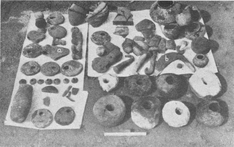 - 7. Clay objects of the Al Ubaid period, from Tell Uqair, in the Iraq Museum, Baghdad (Journal of Near Eastern Studies, II [1943], Plate XVI)