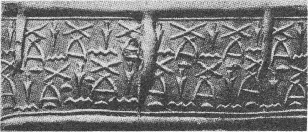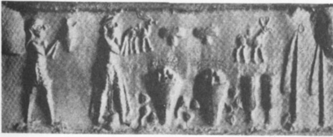 - 32. Impression of a Mesopotamian cylinder seal, from Egypt (Berlin; Scharff, Altertümer der Vor- und Frühzeit Aegyptens, 1929, Plate 25, No. 135)