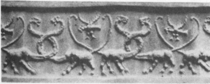 - 16. Impression of a cylinder seal of the Protoliterate period showing frieze of monsters (ibid., Plate Vh)