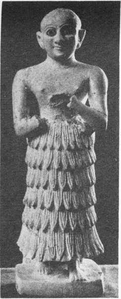 - 21. Alabaster figure of the Early Dynastic period, from Khafajah (Frankfort, More Sculpture from the Diyala Region [Chicago, 1943], Frontispiece), height 7.2 cm.