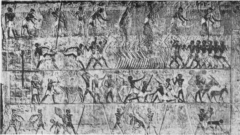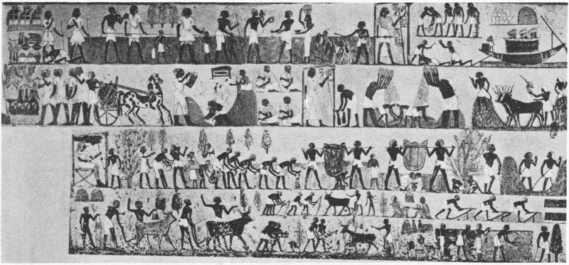 - 30. Agricultural scenes, from the tomb of Menna, New Kingdom, about 1400 B.C. (Wreszinski, Atlas zur Altaegyptischen Kulturgeschichte, I, Plate 231)