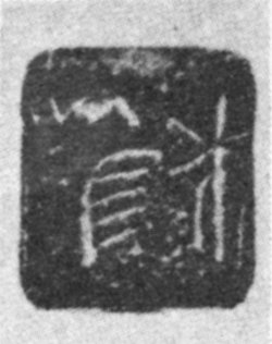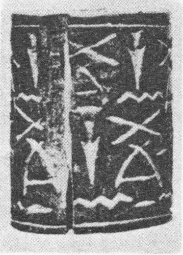 - 35. Wooden cylinder seal of the First Dynasty, from Abydos (Berlin; Scharff, op. cit., Plate 27, No. 48)