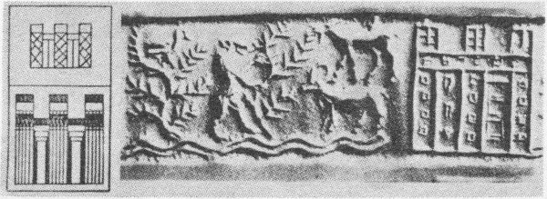 - 42. Two buildings, with recesses and towers, of the First Dynasty in Egypt, and a seal impression of the second half of the Protoliterate period, from Khafajah (American Journal of Semitic Languages and Literatures, LVIII [1941], Plate I, a, b)