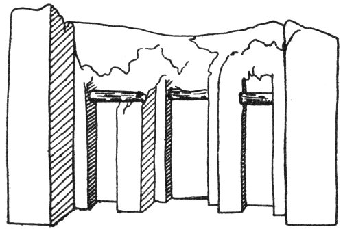 - 50. Recessed tomb with round wooden beams, of the First Dynasty, at Abu Roash (Kemi, VII [1938], p. 40, Fig. 9)