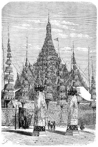 | Pavilion containing the Ashes of the late King of Siam in the Gardens attached to the Palace at Bangkok | To face 61 |