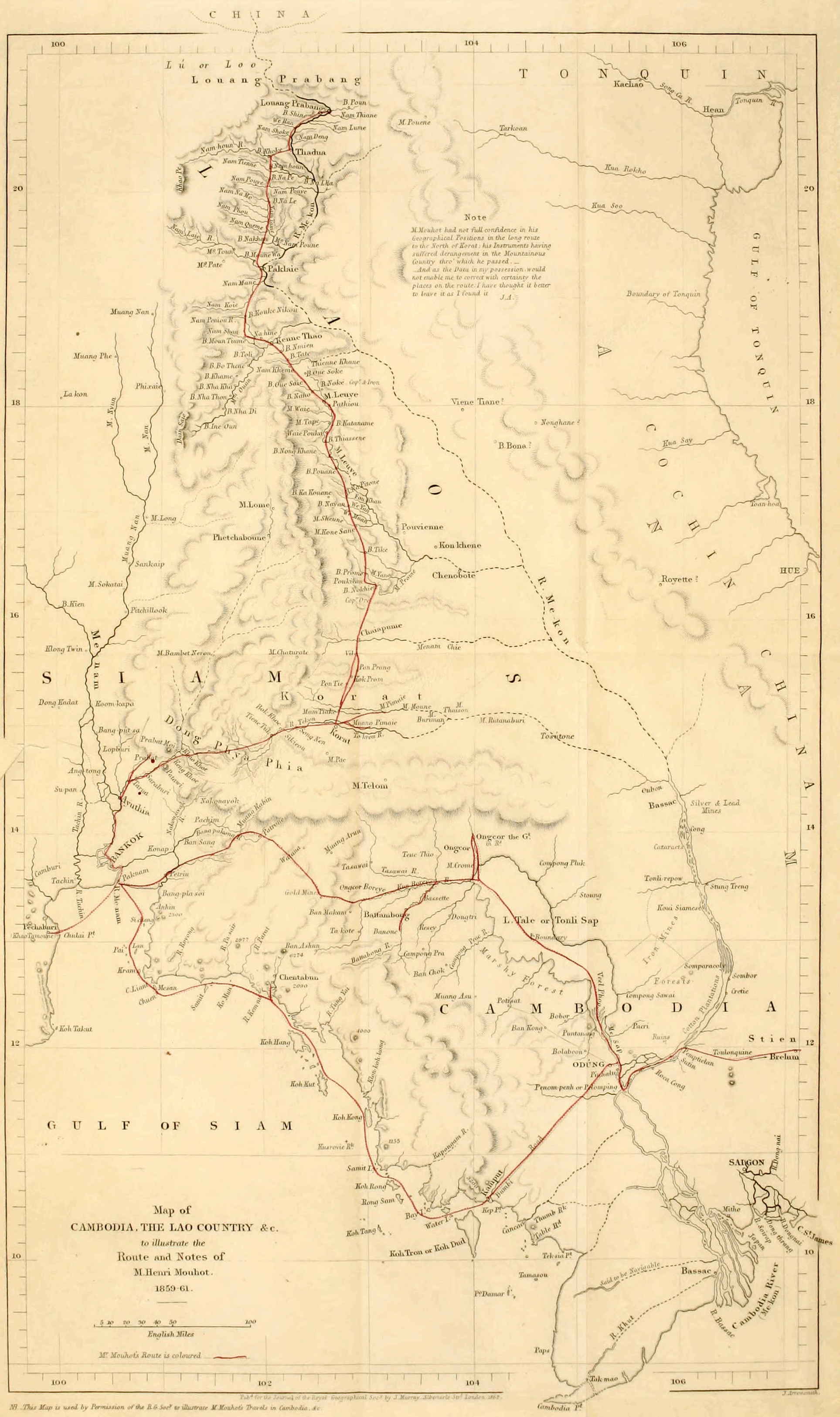 NB. This Map is used by Permission of the R. G. Socy. to illustrate M. Mouhot’s Travels in Cambodia, &c.