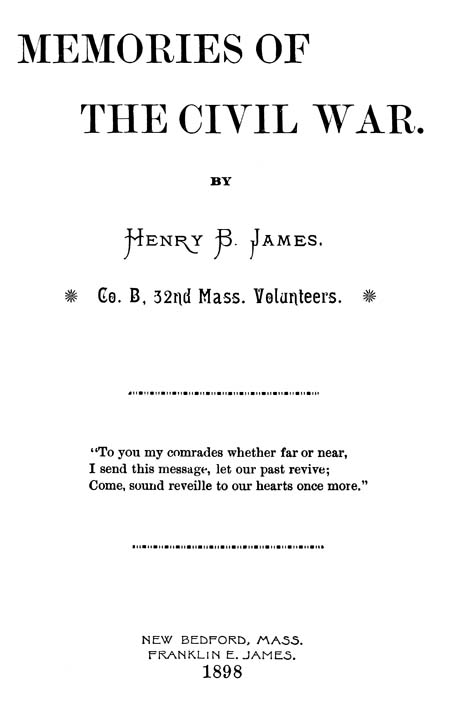 My thanks are due my wife for so carefully editing, and my son for printing my attempt to keep in a permanent form, my recollections of the War of the Rebellion.