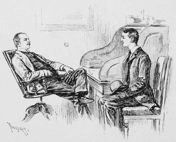 The visitor, thus urged, sank back into the chair from which he had just risen. He was a slender young man, of good height, and his age was perhaps twenty-four. His complexion was of the colorless kind that good health alone keeps from sallowness. His hair was a light brown and fine and thick, and it fell across his temples in the two smooth wings that were made by an accurate parting in the middle. He had the beginnings of a shadowy little moustache, and a pair of good eyes which expressed a fair amount of self-reliance and any amount of hope.
