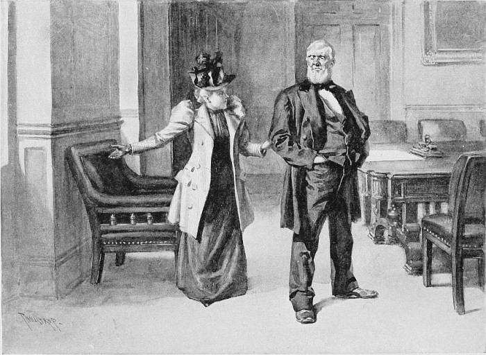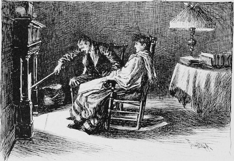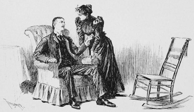 "SHE PRESSED HIM BACK INTO THE DEPTHS OF HIS GREAT EASY-CHAIR"