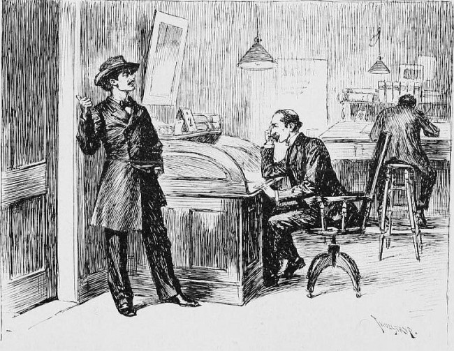 For business is not too exacting a consideration with the western branch of the Massachusetts Brass Company. It is less a hive of industry than a social exchange. The hours are easy, and the habitues are as frequently callers as customers. They are often Jacks or Toms, whose fathers are social pillars in Boston and large land-owners in Wyoming and Dakota, and Jack and Tom—birds of passage in Scotch cheviots and billycock hats—are given to alighting for a brief breathing-spell on this lofty perch, where they reproach the slipshod dress and careless, speech of their friend's small office force by the trim neatness of their own clothes and conversation.