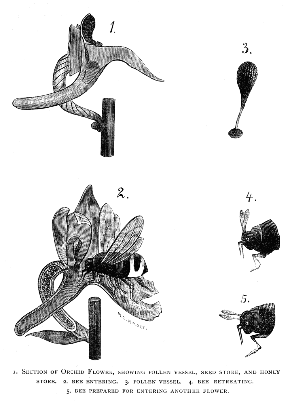 Fertilization of flowering plants — Relation of pollen to the seed vessels — Need for transference of pollen — Means to prevent self-fertilization — Relation between animal life and vegetable — Search for honey by bees and other insects — Bearing the pollen to distant flowers — Distribution of work among insects and birds — Evidence of adaptation — Interdependence of lower and higher organisms — Ants — Their exclusion from certain flowers — Their work, perseverance, intelligence, slave-holding, extracting honey from other insects, constructing bridges | 162 |