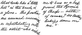 Almost every one who met Bret Harte was struck by his low, rich, well-modulated voice. Mr. Howells speaks of “the mellow cordial of a voice that was like no other.” His handwriting was small, firm and graceful.