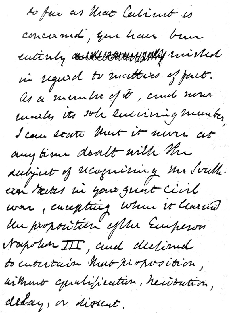 | ixHow the Imperial Pirates of France and England Were Frightened Off Through the Diplomacy of Seward.—Ominous Appearance of the Russian Fleet in American Waters.—Napoleon Aims at the Creation of an Empire West of the Mississippi, and the Restoration of the Old French Colonies.—Plotting with Slidell, Benjamin, Lindsay, Roebuck and Others.—Urging England to Recognize the Confederacy.—Disraeli Explains England’s Designs and Diplomacy.—After the Naval Victory of Farragut and the Capture of New Orleans England Hesitates Through Fear, and Napoleon Changes His Tactics.—Renewal of Intrigues Between England and France.—Their Dastardly Purposes Defeated by the Victories of Gettysburg, Vicksburg and the General Triumph of the Union Arms | 59 |