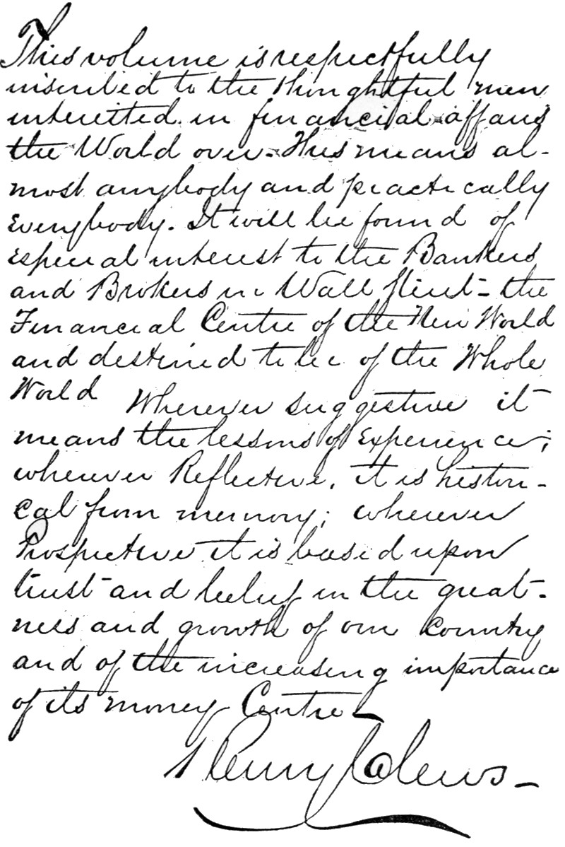 The following pages are intended to throw some light on imperfectly known events connected with Wall Street speculations and investments, and also upon the condition and progress of the country from a financial standpoint, during the fifty years which I have experienced in the great money center.