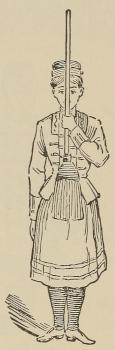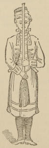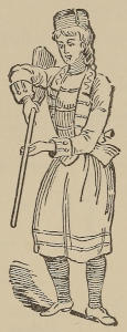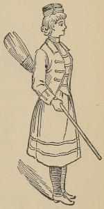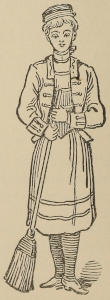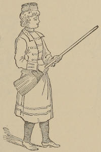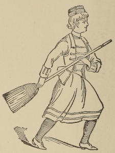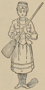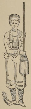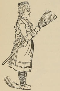 Winter.—Black, loose dress to the feet, fur cap, white wig, and long white beard; dress flecked with bits of cotton, to represent snow; face full and florid. The part may be taken by a lady.