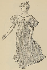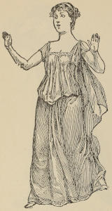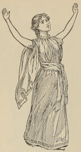 Maiden.—Loose, white robe, wing-like sleeves, displaying arm; hair long, loose, and flowing over shoulders.