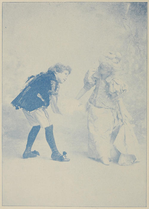 Cinderella, having put on the slipper, has just drawn from her pocket its mate. The sisters, bewildered and dumfounded, have thrown themselves at her feet. This scene makes a fitting conclusion to the performance, and the next two scenes should not be attempted unless the appliances are at hand to make Cinderella imagination’s richest queen.