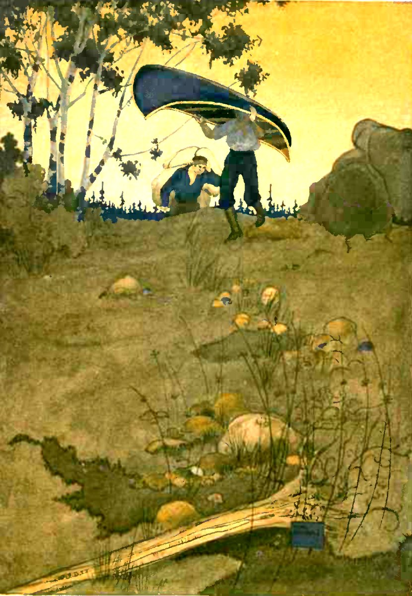 My companion trailed for trout as we paddled along, but, the Indian warning him that a big fish might upset us, for there are some very large ones there, he agreed to pass the line quickly to the stern if he had a bite.