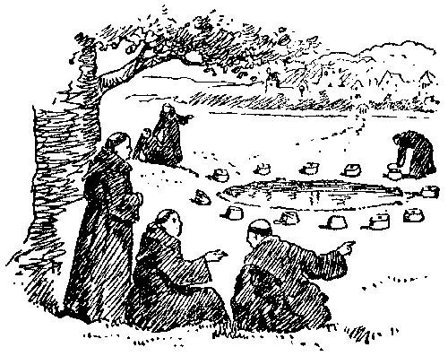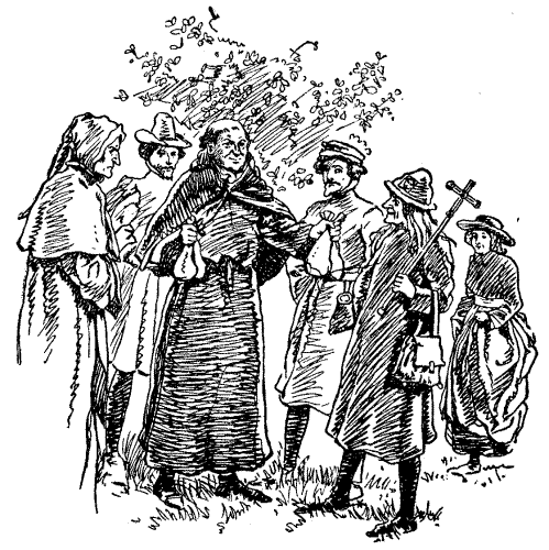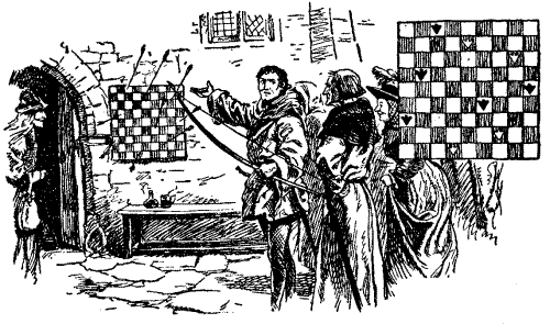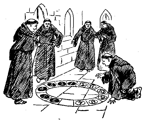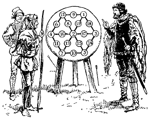 A Chance-gathered company of pilgrims, on their way to the shrine of Saint Thomas à Becket at Canterbury, met at the old Tabard Inn, later called the Talbot, in Southwark, and the host proposed that they should beguile the ride by each telling a tale to his fellow-pilgrims. This we all know was the origin of the immortal Canterbury Tales of our great fourteenth-century poet, Geoffrey Chaucer. Unfortunately, the tales were never completed, and perhaps that is why the quaint and curious "Canterbury Puzzles," devised and propounded by the same body of pilgrims, were not also recorded by the poet's pen. This is greatly to be regretted, since Chaucer, who, as Leland tells us, was an "ingenious mathematician" and the author of a learned treatise on the astrolabe, was peculiarly fitted for the propounding of problems. In presenting for the first time some of these old-world posers, I will not stop to explain the singular manner in which they came into my possession, but proceed at once, without unnecessary preamble, to give my readers an opportunity of solving them and testing their quality. There are certainly far more difficult puzzles extant, but difficulty and interest are two qualities of puzzledom that do not necessarily go together.[Pg 24]