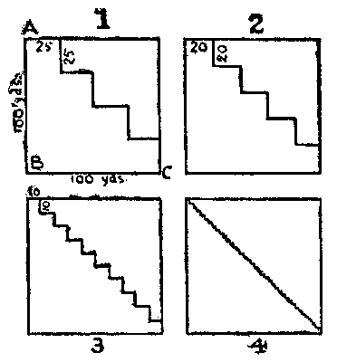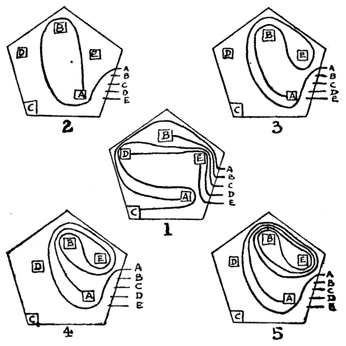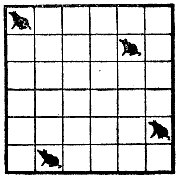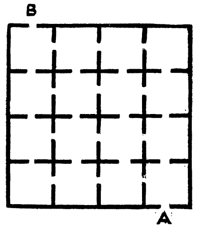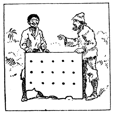 It sometimes requires more care than the reader might suppose so to word the conditions of a new puzzle that they are at once[Pg 19] clear and exact and not so prolix as to destroy all interest in the thing. I remember once propounding a problem that required something to be done in the "fewest possible straight lines," and a person who was either very clever or very foolish (I have never quite determined which) claimed to have solved it in only one straight line, because, as she said, "I have taken care to make all the others crooked!" Who could have anticipated such a quibble?
