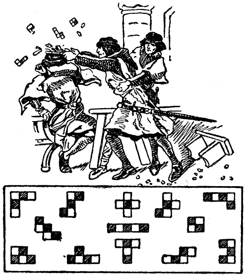But these classes do not nearly embrace all kinds of puzzles even when we allow for those that belong at once to several of the classes. There are many ingenious mechanical puzzles that you cannot classify, as they stand quite alone: there are puzzles in logic, in chess, in draughts, in cards, and in dominoes, while every conjuring trick is nothing but a puzzle, the solution to which the performer tries to keep to himself.