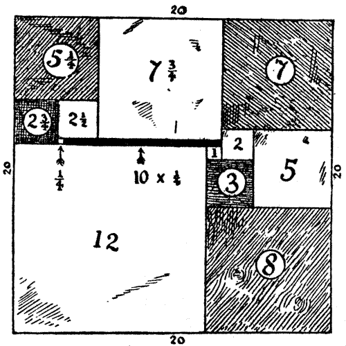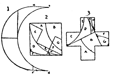 There are mysteries that have never been solved in many branches of Puzzledom. Let us consider a few in the world of numbers—little things the conditions of which a child can understand, though the greatest minds cannot master. Everybody has heard the remark, "It is as hard as squaring a circle," though many people have a very hazy notion of what it means. If you have a circle of given diameter and wish to find the side of a square that shall contain exactly the same area, you are confronted with the problem of squaring the circle. Well, it cannot be done with exactitude (though we can get an answer near enough for all practical purposes), because it is not possible to say in exact numbers what is the ratio of the diameter to the circumference. But it is only in recent times that it has been proved to be impossible, for it is one thing not to be able to perform a certain feat, but quite another to prove that it cannot be done. Only uninstructed cranks now waste their time in trying to square the circle.[Pg 21]