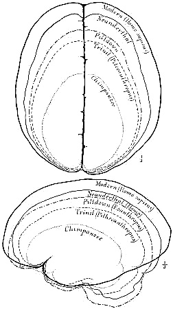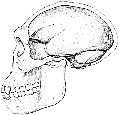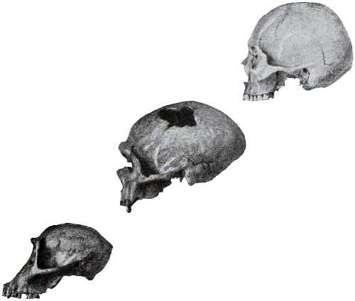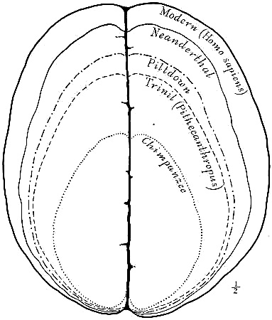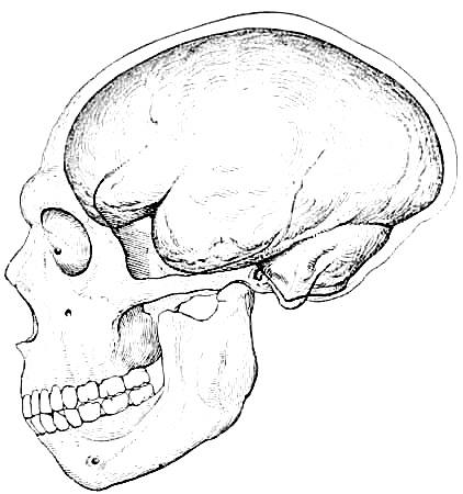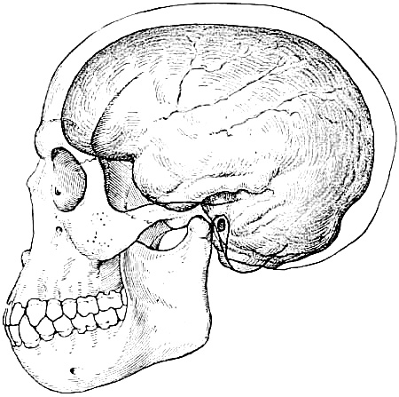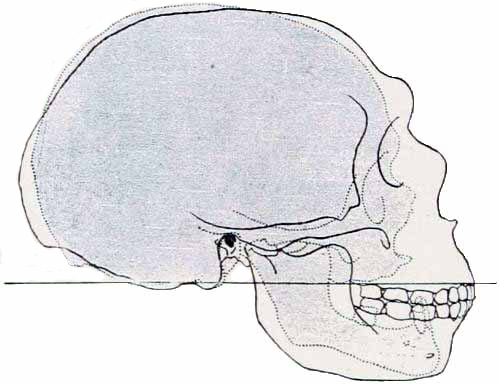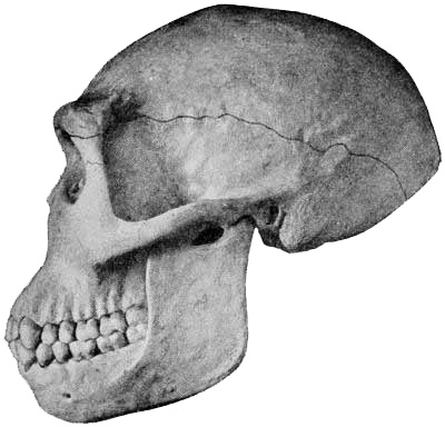 Interest in human evolution centres chiefly in the skull and in the brain. The slope of the forehead and the other angles, which are so important in forming an estimate of the brain capacity, may be directly compared throughout this volume, because the profile or side view of every skull figured is placed in exactly the same relative position, namely, on the lines established by the anatomists of the Frankfort Convention to conform to the natural pose of the head on the living body.