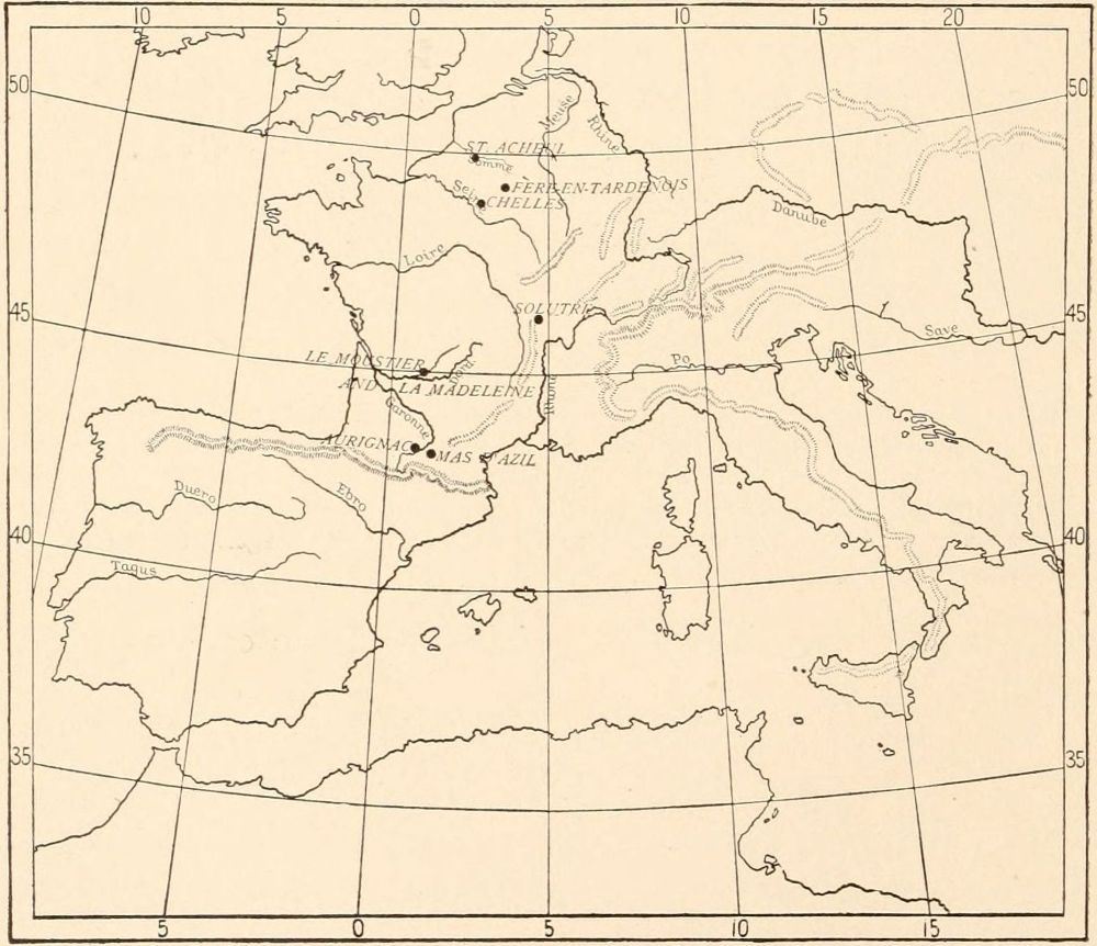 The history of this region and its people has been developed chiefly through the genius of French archæologists, beginning with Boucher de Perthes. The more recent discoveries, which have come in rapid and almost bewildering succession since the foundation of the Institut de Paléontologie humaine, have been treated in a number of works recently published by some of the[Pg viii] experienced archæologists of England, France, and Germany. I refer especially to the Prehistoric Times of Lord Avebury, to the Ancient Hunters of Professor Sollas, to Der Mensch der Vorzeit of Professor Obermaier, and to Die diluviale Vorzeit Deutschlands of Doctor R. R. Schmidt. Thus, on receiving the invitation from President Wheeler to lecture upon this subject before the University of California, I hesitated from the feeling that it would be difficult to say anything which had not been already as well or better said. On further reflection, however, I accepted the invitation with the purpose of attempting to give this great subject a more strictly historical or chronological treatment than it had previously received within the limits of a popular work in our own language, also to connect the environment, the animal and human life, and the art.
