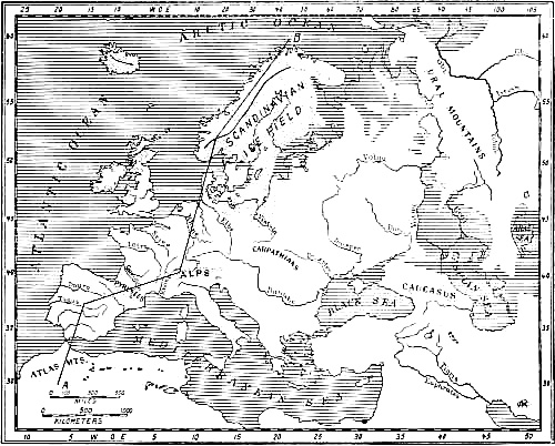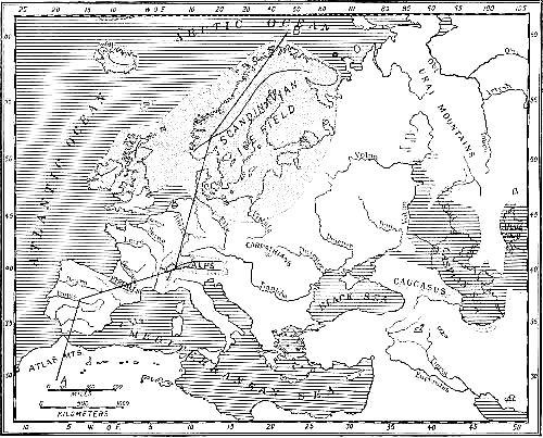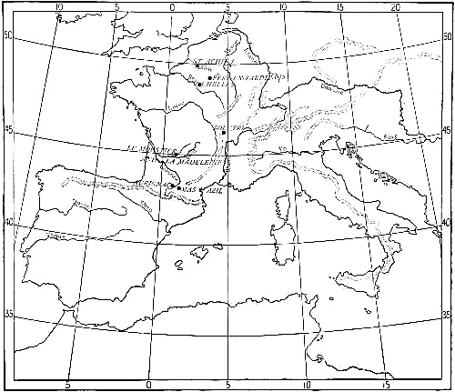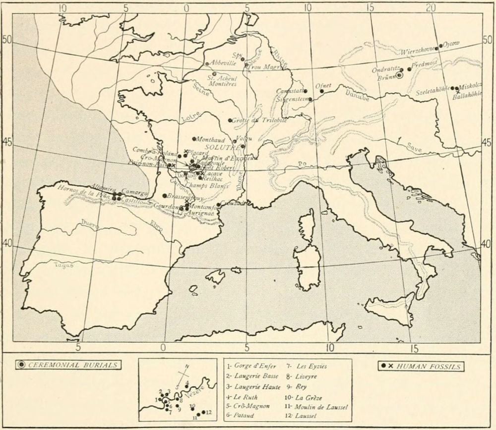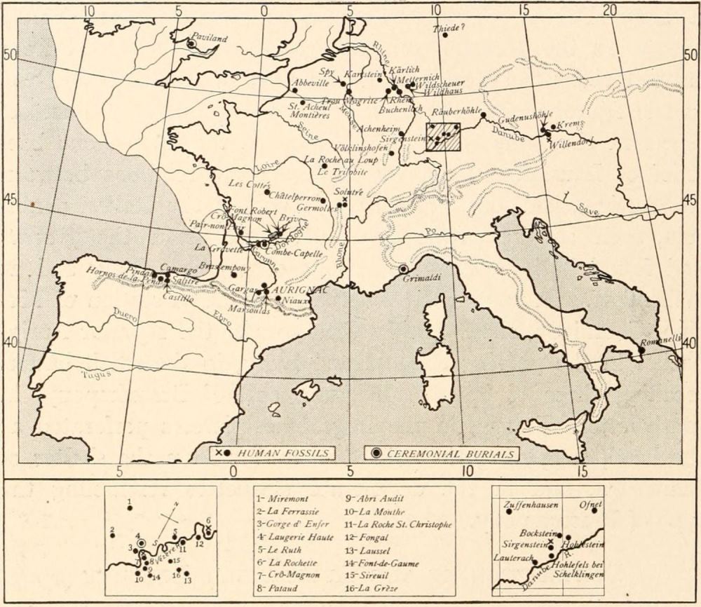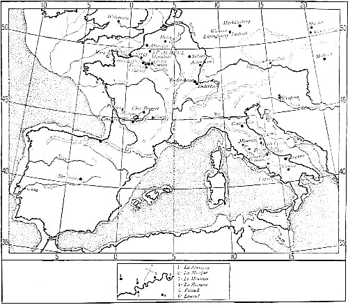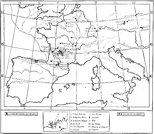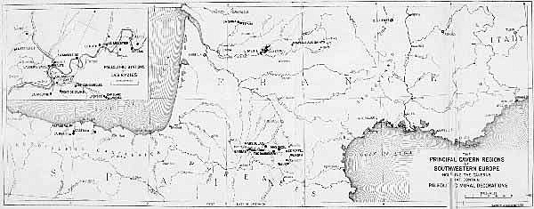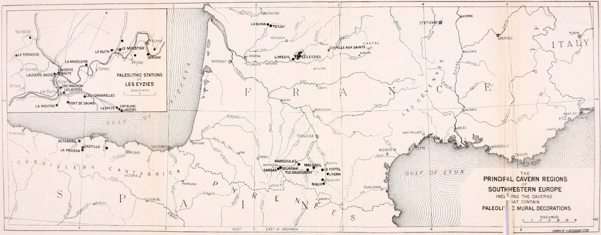 Region traversed in the author's motor tour of 1912 through the Palæolithic caverns of Italy, France, and Spain.
