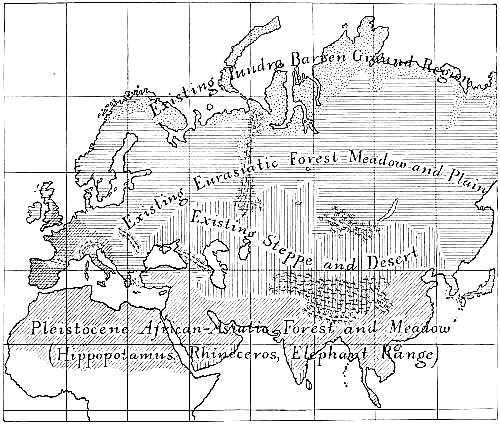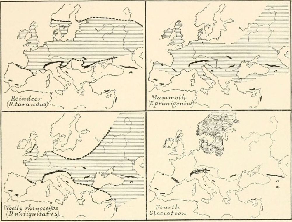 This element of the time in which the various events occurred can only be drawn from a great variety of sources, from the simultaneous consideration of the geography, climate, plants and animals, the mental and bodily development of the various races, and the industries and arts which reflect the relations between the mind and the environment. In more technical terms, I have undertaken in these lectures to make a synthesis of the results of geology, palæontology, anthropology, and archæology, a correlation of environmental and of human events in the European Ice Age. Such a synthesis was begun many years ago in the preparation of my Age of Mammals, but could not be completed until I had gone over the territory myself.