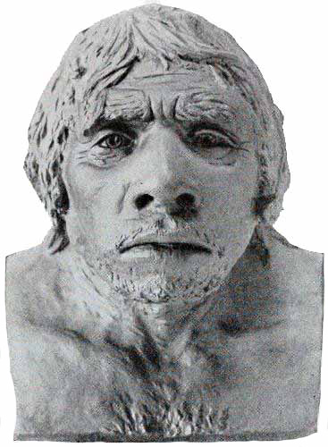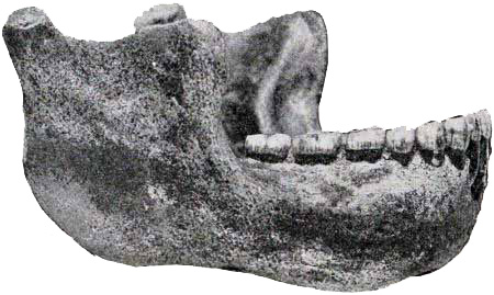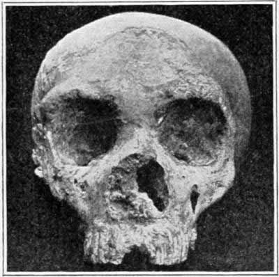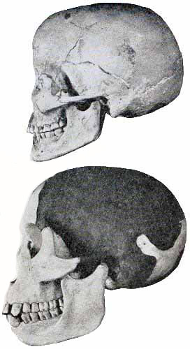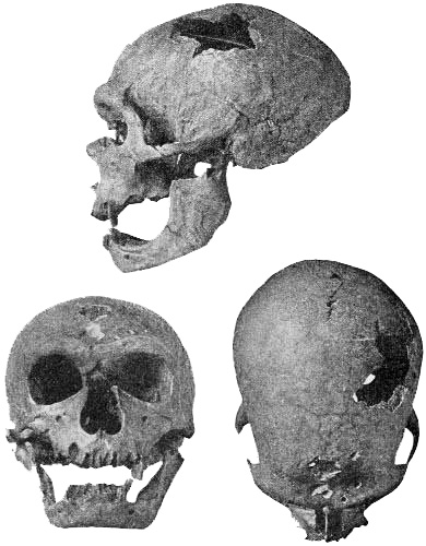 [AS] Despite Schwalbe's statement, the supraorbital ridges in this skull appear to form a complete bridge. Doctor Hrdlička regards the related Předmost skull as distinctly showing Neanderthaloid affinity.