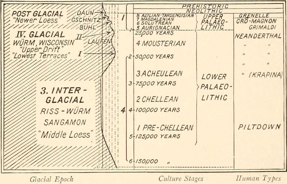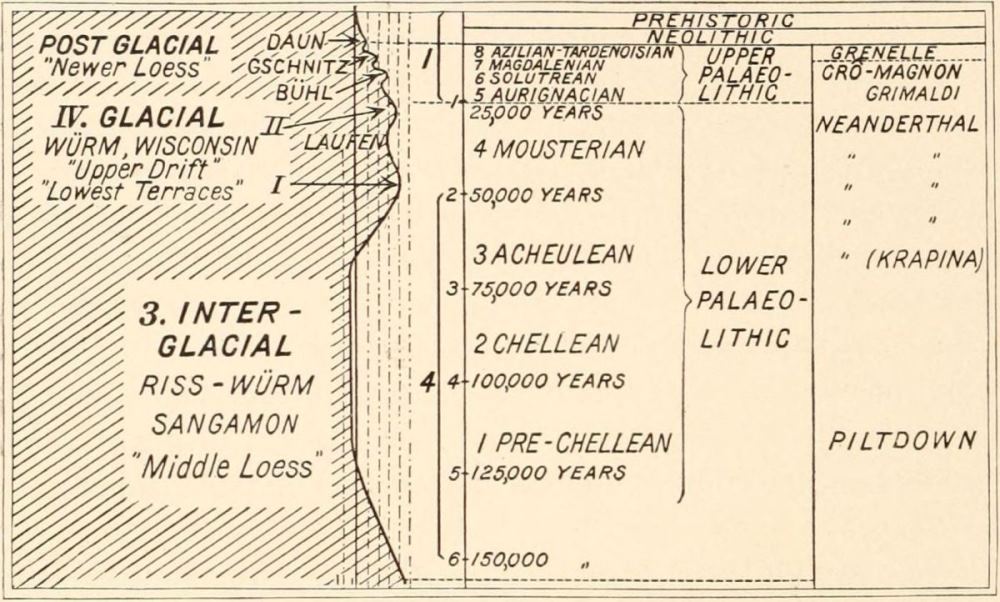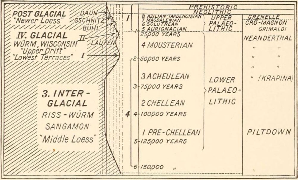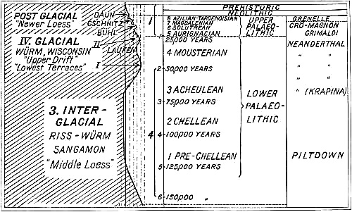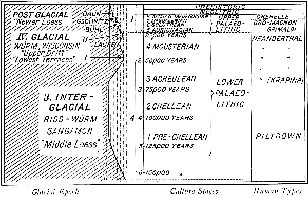 [L] This table is a modification of that of Obermaier in his Mensch der Vorzeit.(38) To each period of the chronologic reckoning should be added the 1900 years of our era.