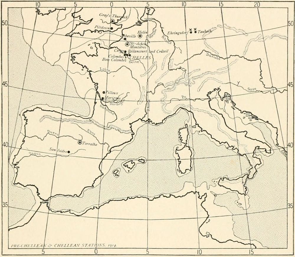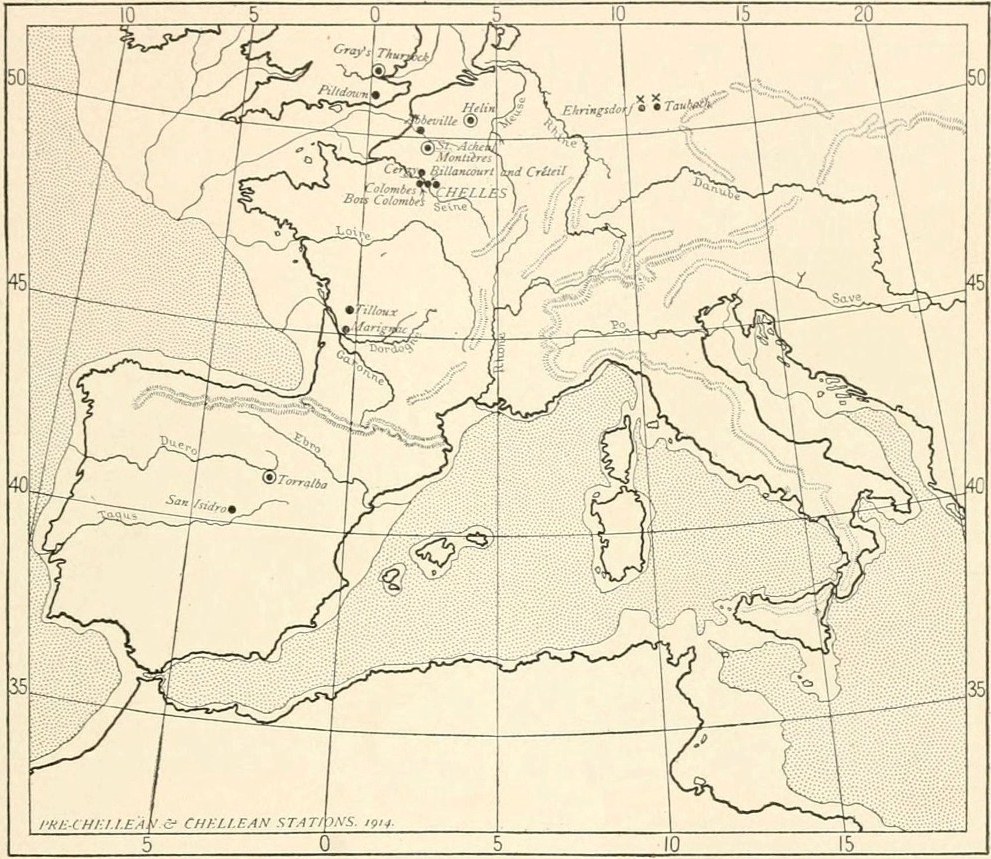 [U] The weakness of Penck's argument for placing the Chellean in the Second Interglacial was exposed by precise observations of Boule(5) and Obermaier(6) in the Alps, the Jura, and the Pyrenees.
