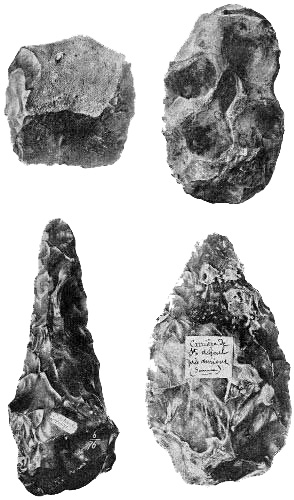 This volume is the outcome of an ever-memorable tour through the country of the men of the Old Stone Age, guided by three of the distinguished archæologists of France, to whom the work is gratefully dedicated. This Palæolithic tour[A] of three weeks, accompanied as it was by a constant flow of conversation and discussion, made a very profound impression, namely, of the very early evolution of the spirit of man, of the close relation between early human environment and industry and the development of mind, of the remote antiquity of the human powers of observation, of discovery, and of invention. It appears that men with faculties and powers like our own, but in the infancy of education and tradition, were living in this region of Europe at least 25,000 years ago. Back of these intelligent races were others, also of eastern origin but in earlier stages of mental development, all pointing to the very remote ancestry of man from earlier mental and physical stages.